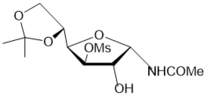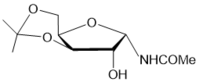 1Н NMR (500 MHz, D2O) δ: 5.59 (d, 1Н, J1,2 = 4.9 Hz, Н-1), 4.1 (t, 1Н, J3,4 = 3.2 Hz, J3,2 = 3.1 Hz, Н-3), 3.98 (dd, 1Н, J2,1 = 4.9 Hz, Н-2), 3.70-3.81 (m, 1Н, Н-4), 3.64 (dd, 1Н, J5,4 = 4.5 Hz, J5,5′ = 11.2 Hz, Н-5), 3.60 (dd, 1Н, J5′,4 4.7 Hz, Н-5′), 1.99 (s, 3H, NHCOCH3). 13C NMR (126 MHz, D2O) δ: 175.0 (NHCOMe), 82.4 (С-1), 80.0(C-4), 75.7, 75.0 (C-2, С-3), 61.4 (С-5), 22.1 (NHCOMe). HRMS (ESI+): m/z calcd for C7H13NO5M+Na+: 214.0691, found 214.0686.