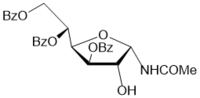 Preparation of 6-O-benzoyl-N-acetyl-3,4-O-isopropylidene-α-d-galactopyranosylamide (55) by hydrolysis of the oxazoline 53