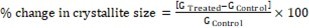 Percent change in crystallite size (G) of zinc chloride was calculated using following equation 2: